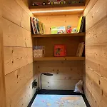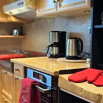 木屋设有3间卧室,配备阳台,梳妆室 和沙发.设施齐全的厨房设有微波炉,电子热水壶 和咖啡壶/茶壶. 这里铺有镶木地板,配有坐浴盆,独立卫生间 和浴缸. 全部卧室均设有低过敏性的羽绒枕头,低过敏性的枕头 和无过敏性的枕头. 客人可以使用3间浴室.